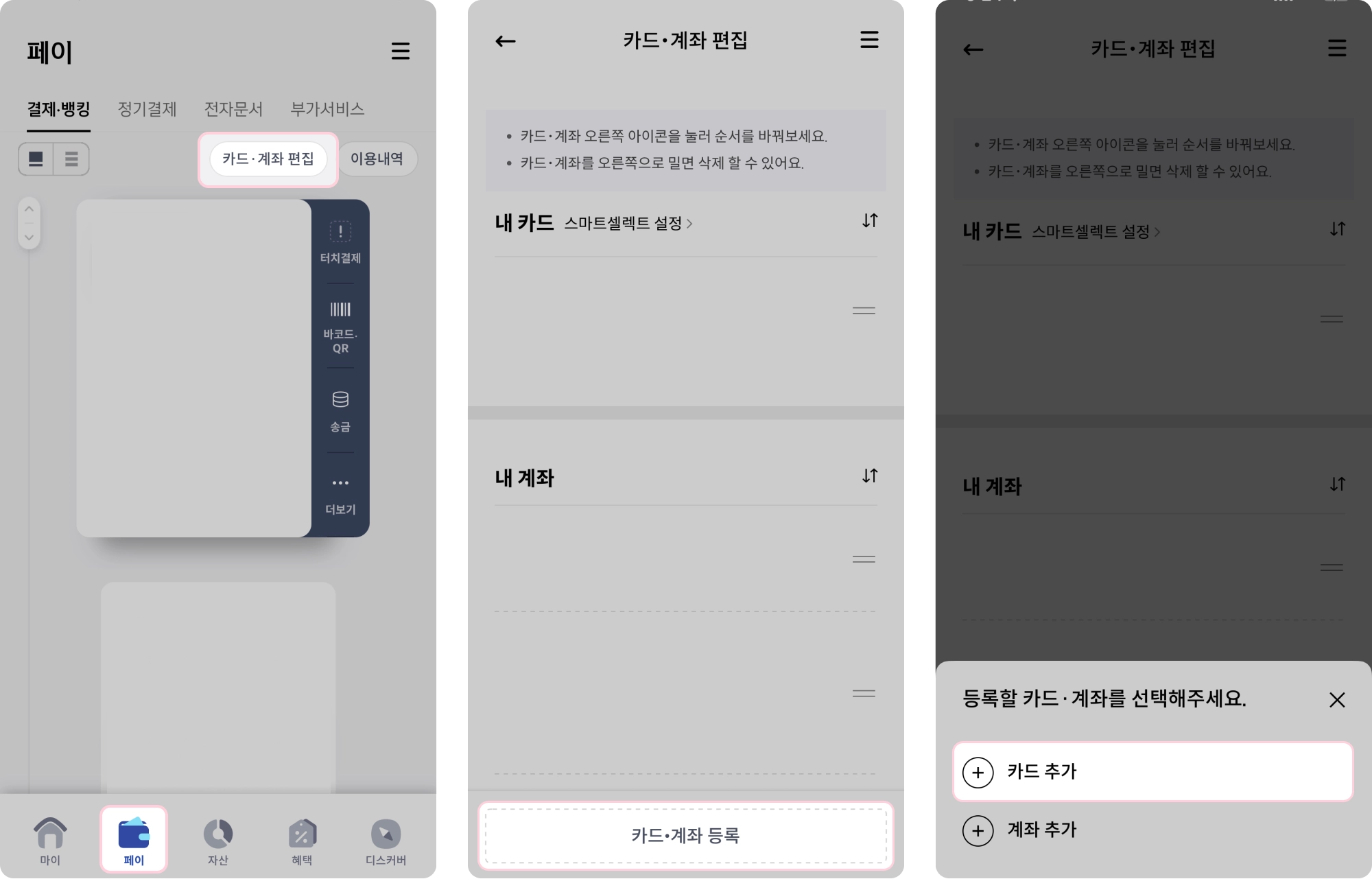 카드사나 카드 종류, 수령 방법 선택을 다르게 하면 안되나요?