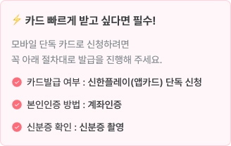 TIP 2 체크카드로 진행 시 신한은행 계좌가 없어도 발행할 수 있어요.